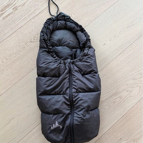Olderwälder Banynest dunpose med refleksdetaljer. Godt brukt - noe falmet på stoffet inni, men hel og mye bruk igjen.