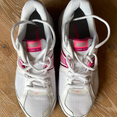 Nike Sneakers joggesko i størrelse 37, hvit med rosa detaljer. Laget for daglig bruk og trening. Designet med snøring og polstret innside for komfort.