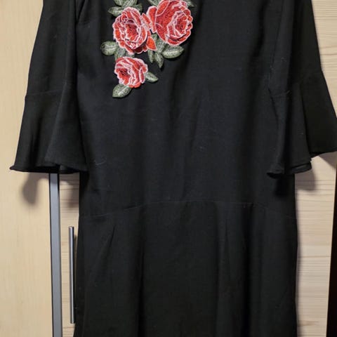 Fin svart kjole med sølv hjerter. Kjøpt på Kappahl for 899 kr. Kun brukt 1 gang, selges da den ikke blir brukt.