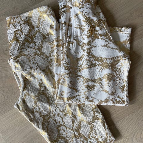 Michael Kors bukser i flerfarget mønster. Størrelse 38. Materiale består av 98% bomull og 2% elastan. Elegant og i god kvalitet. Her får du det klassiske mønsteret til Michael Kors i gullfarge.