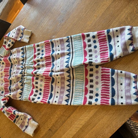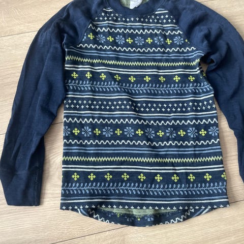 Relativt pent brukt, med intakte strikker. Litt avfarget.