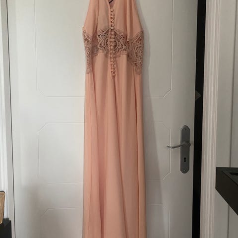 Nydelig sid kjole fra Vila. Fargen er dus rosa/fersken.