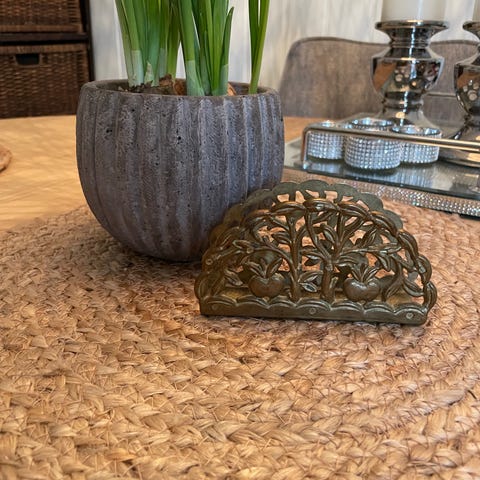 Nydelig serviettholder. Veldig praktisk til utebruk, da den hindrer servietter å blåse bort. Denne er ikke vintage( mer enn 20 år) da den er kjøpt for 26 år siden.