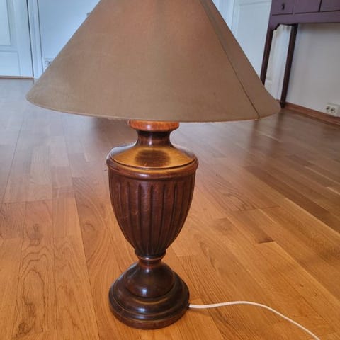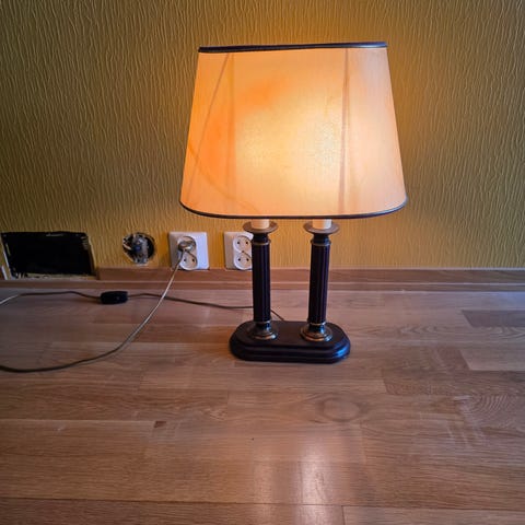 Vintage bordlampe i kobber med stoffskjerm høyde 64 cm