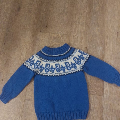 Hjemmestrikket genser med traktormønster