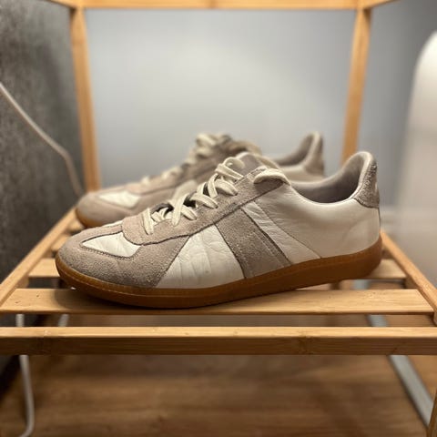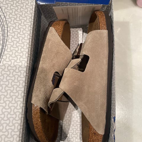 Fear of God X Birkenstock i størrelse 41. Laget av beige semsket skinn med gummisåle. Kun brukt inne hjemme og på terrassen.