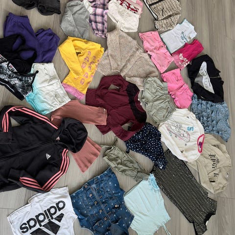 Til salgs: klær for jente i alderen 6–9 år (størrelse 128–140). Datteren min er 8 år og bruker nå størrelse 146–152.