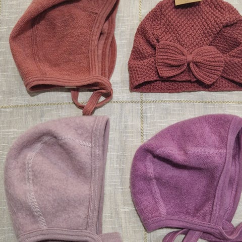 Pent brukte luer fra Nøstebarn i ull/silkeblanding.