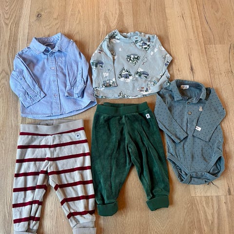 Body, bukse og jakke i en nydelig grønn farge. Størrelse 80. Pent brukt av ett barn. Røyk- og dyrefritt hjem.