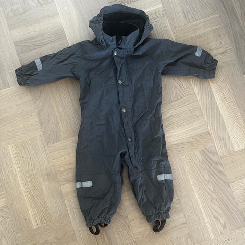 Polarn O. Pyret parkdress i blå farge, størrelse 80, designet for unisex. Laget av slitesterkt materiale med 2 glidelåser foran for enkel påkledning. Refleksdetaljer for økt synlighet. Passer til utendørs bruk for barn i alder 9-12 måneder.