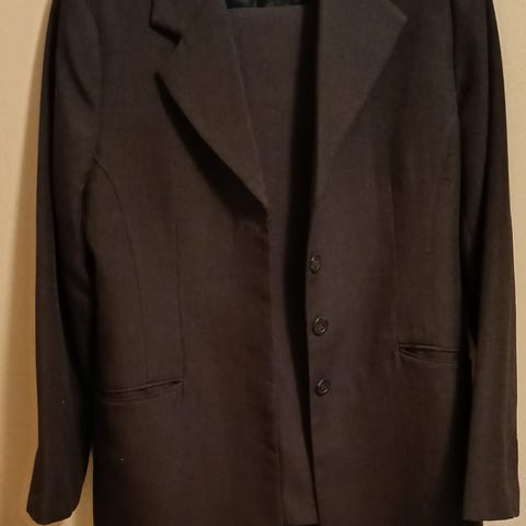 Dressjakke og bukse, buksen er ca 100 cm lang litt smal i bena, jakke ca 62-65 lang