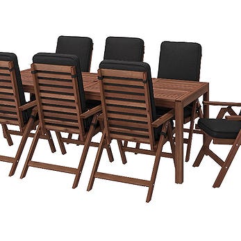 Utemøbelsett med bord og 6 stoler i svart rotting