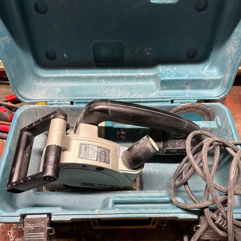 Multislip Multislip slipemaskin med tilhørende koffert. Maskinen har et rektangulært slipeområde og er utstyrt med ledning for strømtilkobling. Egnet for sliping av ulike materialer og overflater.