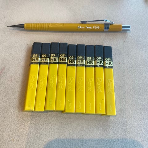 mekanisk blyant med 0.5 mm blystørrelse. Blyanten har et sort fargedesign og metallklips. Egnet for presisjonsarbeid og skriving.