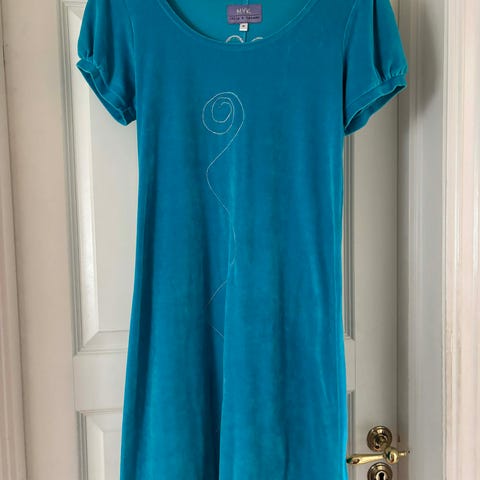 Har strikk i toppen, ved ermene og i livet. Pent til høye bukser og skjørt. 90 prosent bomull, resten elastan.