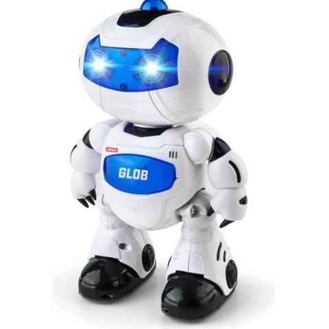Gående dansende robot leketøy for barn, 360 kroppssnurring med LED- lys og musikk elektronisk.