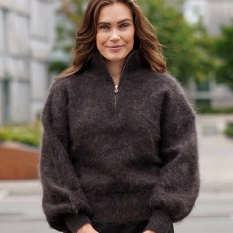 This relaxed fit cashmere sweater features a ribbed neckline, cuffs, and bottom hem, with contrast bindings for an elegant finish. The blouson sleeves add a dramatic touch to the sweater’s timeless design, making it a luxurious and versatile piece.