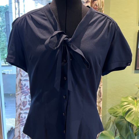 Petrol farget retro bluse Flerfarget bluse i str M.