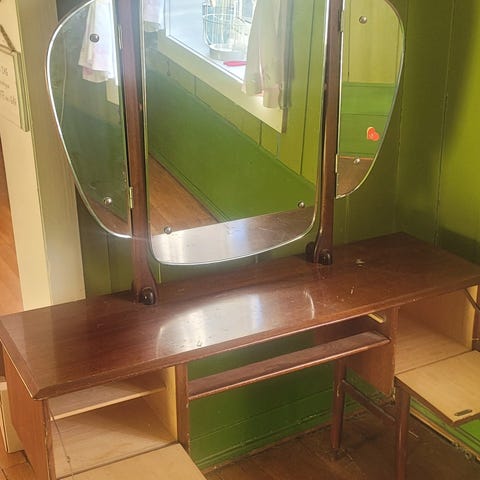 Sminkebord med speil, skuffer og 2 skap
