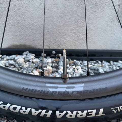Satt opp tubeless nå, men ikke fylt guffe enda, kan gjøres før salg dersom du vil kjøre tubeless.
