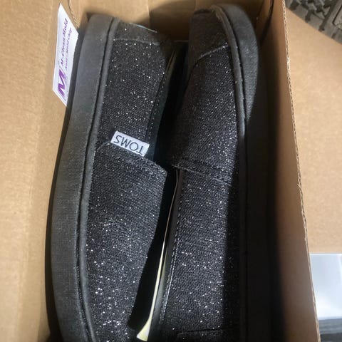Kjempefine TOMS sko i størrelse 32, laget av beige stoffmateriale. Skoene er designet for gutter og har en enkel slip-on stil med elastiske detaljer for enkel på- og avkledning. Kun brukt en gang.