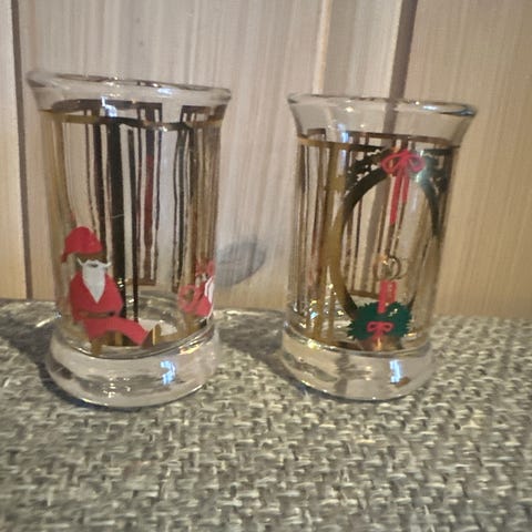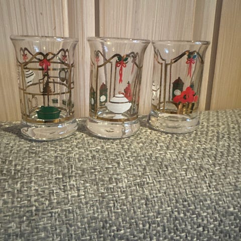 Jeg har mange flere dramglass fra Holmegaard jul, ulike årstall.