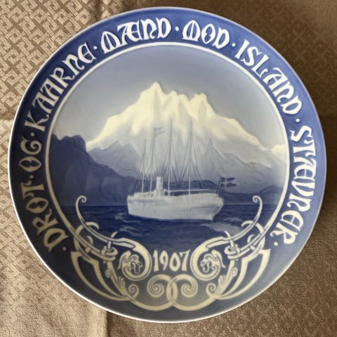 Flott platte fra B&G utgitt i begrenset antall til minne om kong Fredrik 9. Utgitt i forbindelse med dronning Margethes innsetting som dronning 14.januar 1972. Meget pen og feilfri.