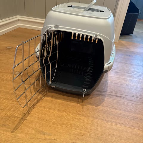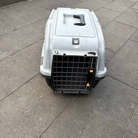 Jeg selger to Ferplast Atlas 20 dyretransportbur laget av plast i fargene burgunder og hvit. Burene har ventilasjonsåpninger og en dør med låsemekanisme. Det er egnet for transport av små dyr. Noen deler av buret viser tegn til slitasje og skade etter at hunden min har gnagd litt ellers er burene i veldig fin stand.