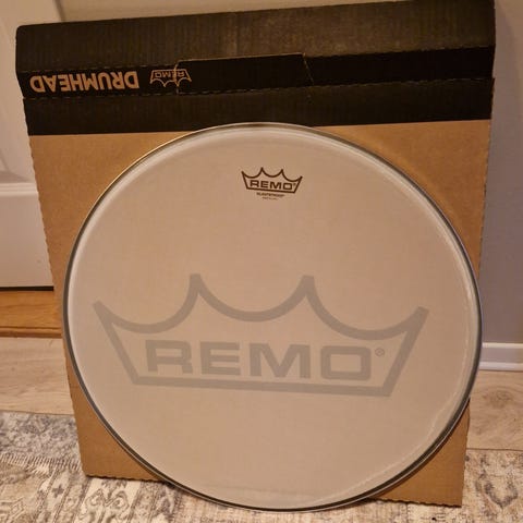 Remo silentstroke trommeskinn med en diameter på 14 tommer. Kun brukt 2 ganger på en skarptromme.
