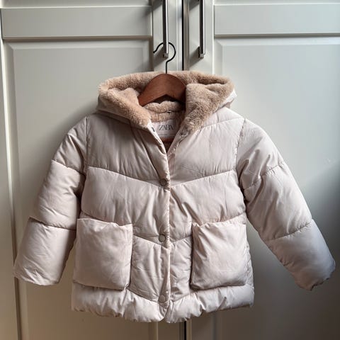 Zara barnejakke i størrelse 110, svart farge. Jakken har et mykt fôr som gir varme og komfort, egnet for barn i alderen 4-6 år.