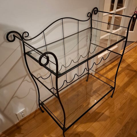 Hyller tv/stereobenk og serverings traller.