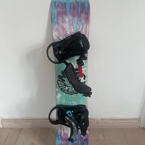 Følger med svarte Nitro bindinger og Nitro snowboardstøvler i størrelse 40.