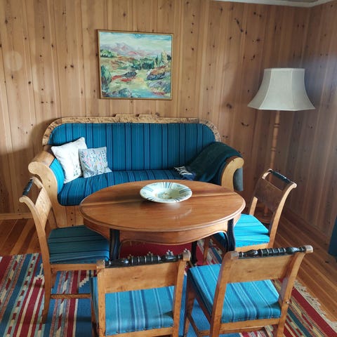 Antikk Spisebord med uttrekk og tilhørende stoler og sofa