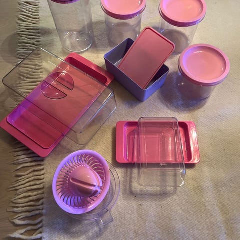 19 flasker med lokk, ulik størrelse. 250,- for alle