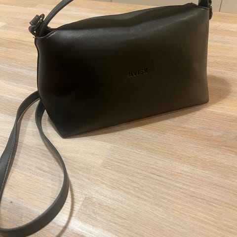 Dokumentmappe/PC- veske m/lang skulderstropp. Farge svart. Lengde ca. 40 cm, høyde ca. 28 cm, dybde ca. 7 cm. "Ben" under slik at den kan settes på gulvet uten å bli fuktig/skitten. To innvendige rom. Ett rom med stropp til å feste PC og en innvendig lomme. Ett smalere rom til dokumenter eller annet.