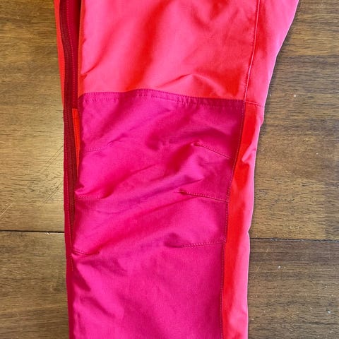 Skogstad skallbukse str 152/12 år. Godt brukt, men ingen hull på stoffet. Mest slitt i skrittet, på knær og nederst på buksekant. En grei ekstra bukse. Trenger nok en runde med impregnering.