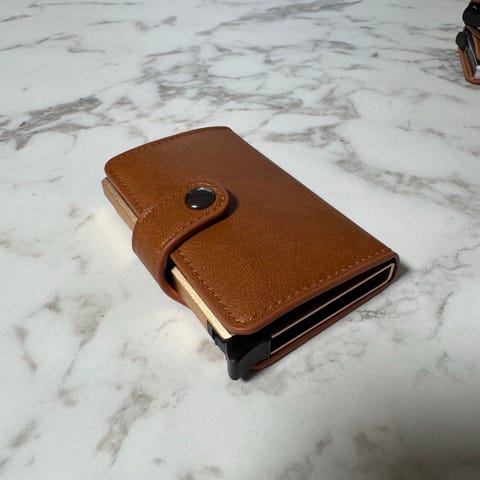 Selger en elegant og moderne lommebok i flott brun farge med høy kvalitet og stilrent design.