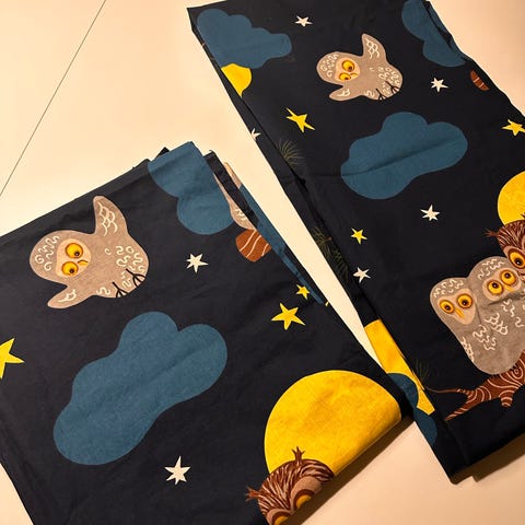 Ikke vært i bruk. Lyse blå /m motiv. Ren bomull.