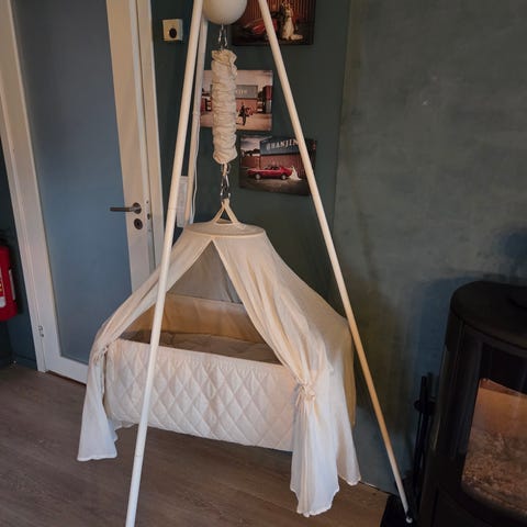 Vuggen er pent brukt til et barn i rundt 6 mnd og alltid brukt med beskyttelse mellom barn og madrass.