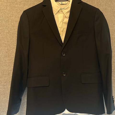 Name it dressjakke, bukse og vest i blå farge, alt i størrelse 152 unntatt buksa som er størrelse 146.