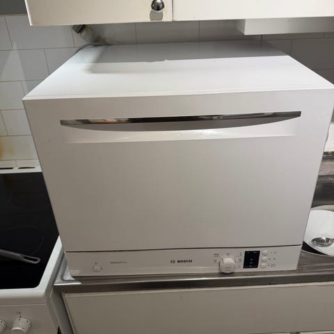 Bosch benkoppvaskmaskin SKS2ITW00E 55cm i hvit farge. Designet for mindre kjøkken eller områder med begrenset plass. Utstyrt med standard tilkoblingskabler og kontrollpanel på fronten. Passer for hjemmebruk eller mindre kontorer. Fungerer som ny. Ingen synlige/usynlige skader eller problemer. 55cm lengde, 45cm høyde og 50cm dybde. Nypris 6495 ,-