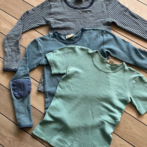 Varmt og godt todelt sett med bukse og genser fra tyske Cosilana i deres populære ullfrotté kvalitet. Dette er en varm og slitesterk kvalitet som luner godt og fint kan gå i arv til flere barn. Kan brukes som pysj eller kosesett. Det er ullfrottè på yttersiden, men inni er den glattstrikket. Laget av 100% økologisk merinoull av beste kvalitet. GOTS-sertifisert. Kan vaskes på maskin ullprogram 30 grader med vaskemiddel for ull/silke.