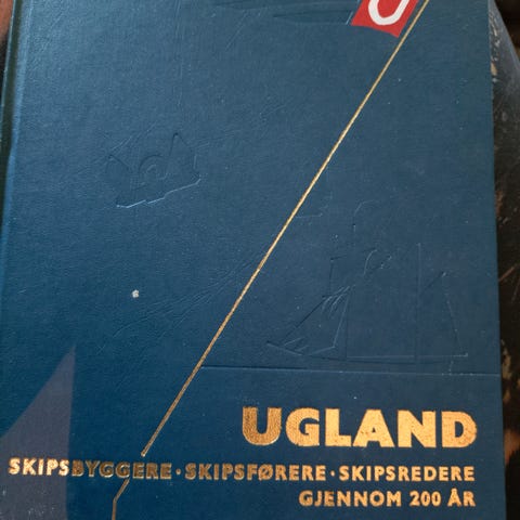 på Ugland. Historien om Johan Jørgen Ugland. Kilden Forlag, Arendal 2001. Innbundet, med vareomslag. Stort format. Omslagets øvre kant med enkelte små, svake bretter. Hilsen / dedikasjon på foran i boken. Sendes for 400,- + porto 69,- (eller velg Fiks ferdig)