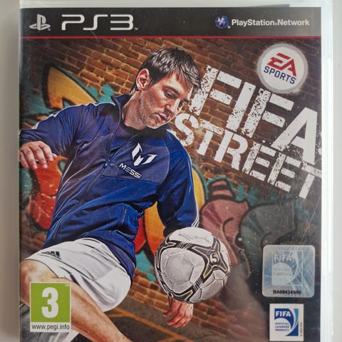 EA Sports FIFA Street Playstation 3 spill. Inkluderer spilldisk og originalt deksel med Messi-tema. Spillet tilbyr ulike fotballmoduser og flerspilleralternativer. Passer for bruk på Playstation 3 konsoll.