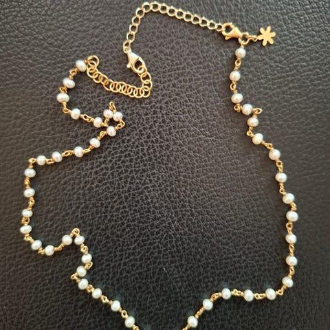 Flott smykke av naturperler selges billig- aldri brukt