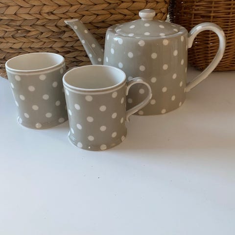 Green Gate tekanne og 6 eggeglass. Selges samlet.