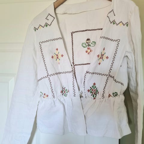 Kul jakke med paljetter , kantet med strikk. Den er foret og faller fint. Pent brukt. Selges fordi den dessverre ikke passer meg lenger.