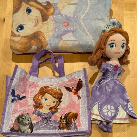 Disney prinsesse dukker med detaljerte kjoler i gult og hvitt stoff. Kjolen til den hvite dukken har et hull på baksiden