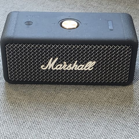 Marshall Emberton III er en superkompakt Bluetooth-høyttaler med over 32 timers spilletid på det innebyggede batteriet. Emberton III er helt vanntett, (IP67) så den håndterer både støv, sand og vann, ja til og med en hurtig dukkert i bassenget.