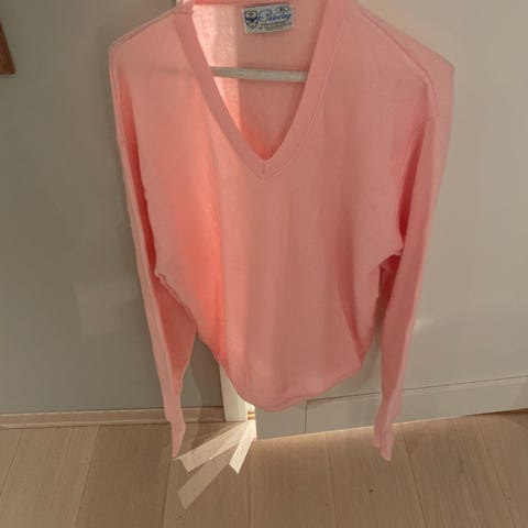 Grønn genser myk og behagelig på i størrelse M laget av 100 % bomull. Genseren har V- hals og har en strikket struktur med kabelmønster.